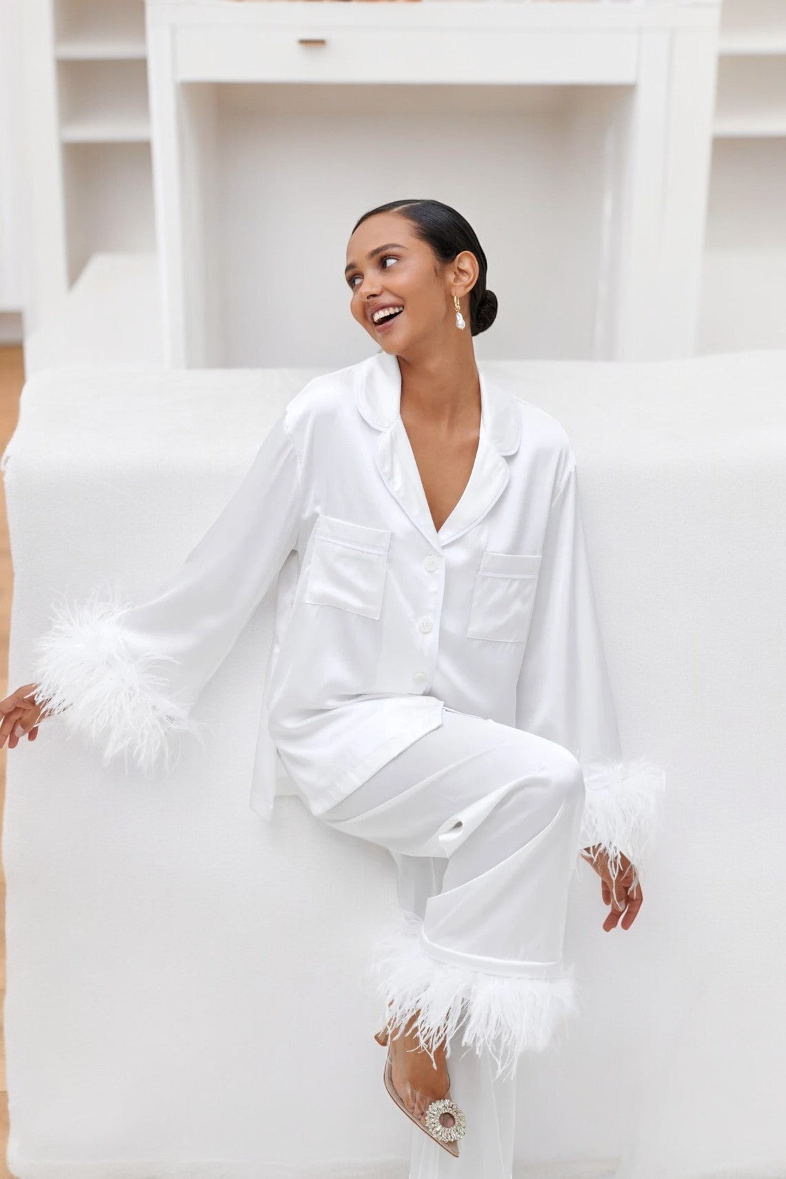 Feather Cropped Pajama Set
