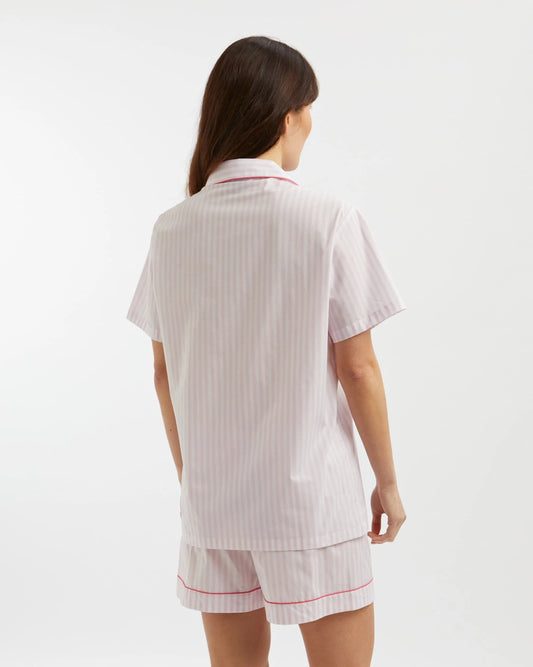 طقم شورت مخطط باللون الوردي مصنوع من القطن بنسبة 100%