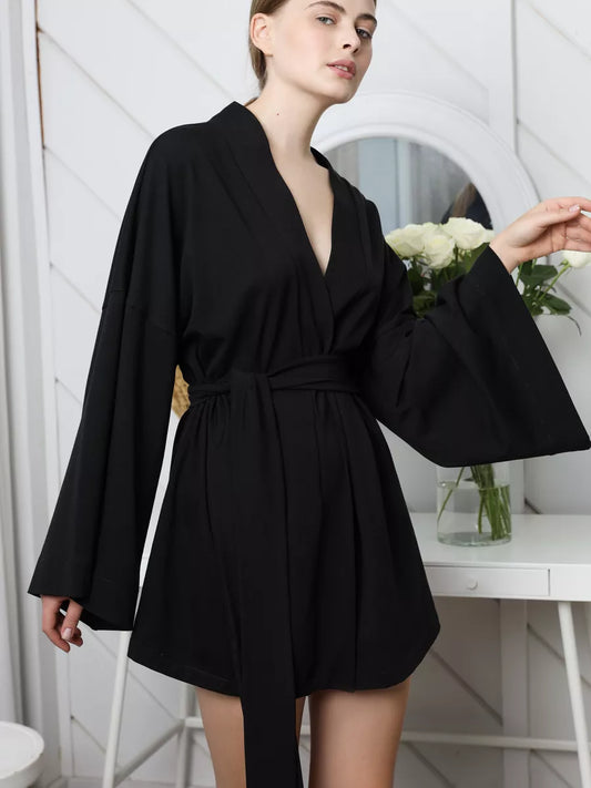 أُوكَازيُونملابس نوم فاخرة من الكتان باللون الأسود - Black