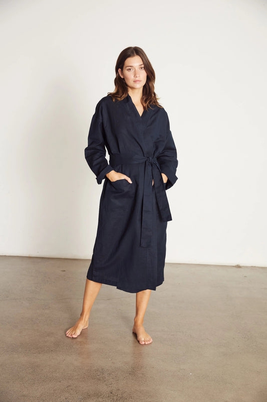 Linen Robe in Navy Blue