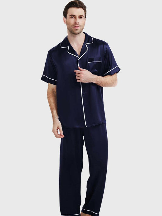 Satin Night Suit with Contrast Piping - Midnight Blue