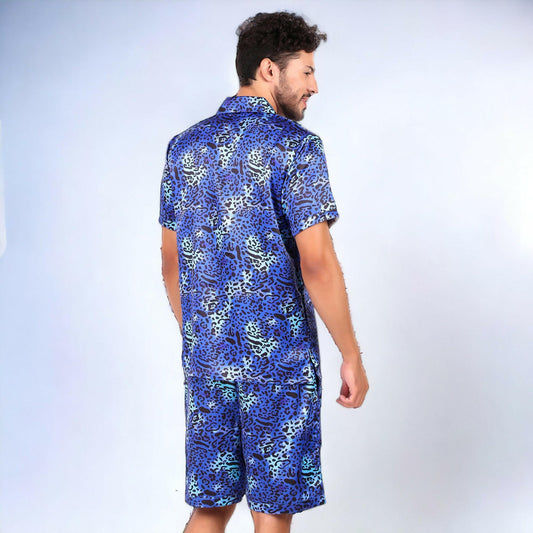 Half Sleeve Satin Co-ords - Midnight Blue