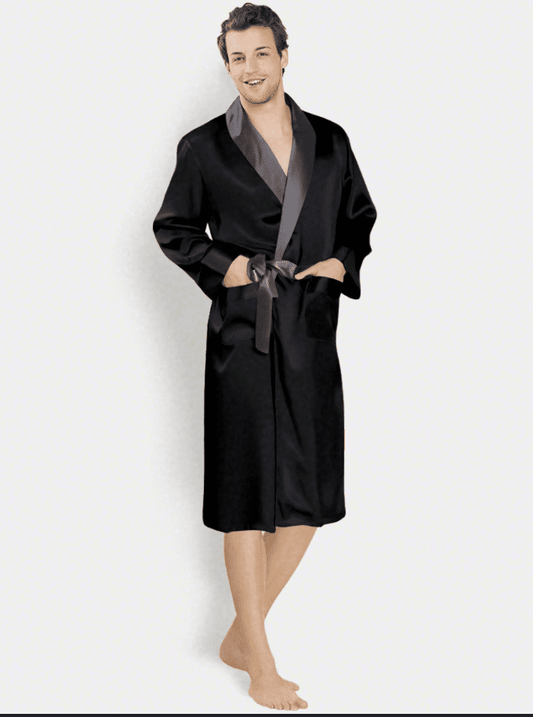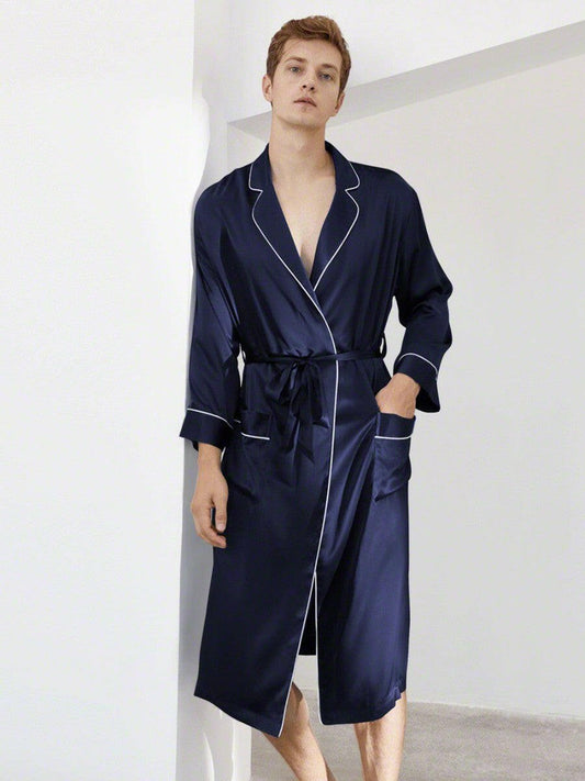 Bata de satén de lujo con pantalones cortos - Azul medianoche