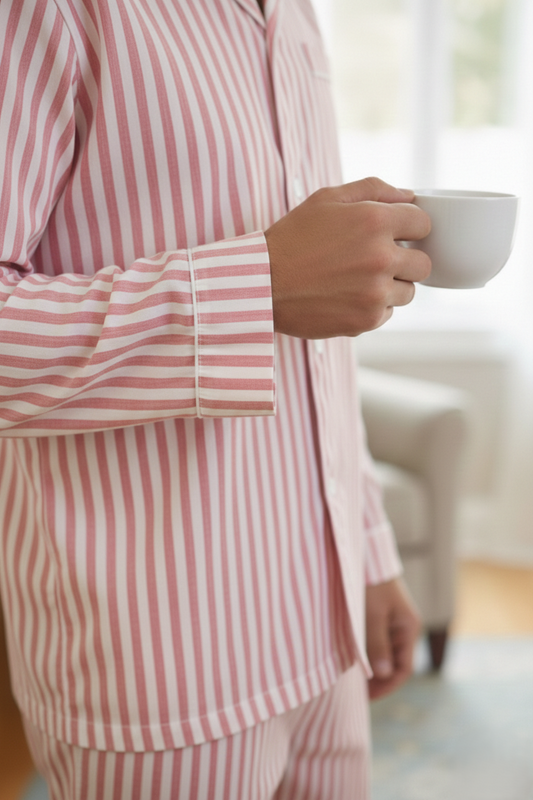 Ropa de estar por casa de rayas azul cielo 100 % algodón - Pink Stripe