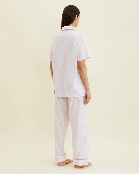 Conjunto de ropa de estar por casa con ribetes en contraste y rayas rosas