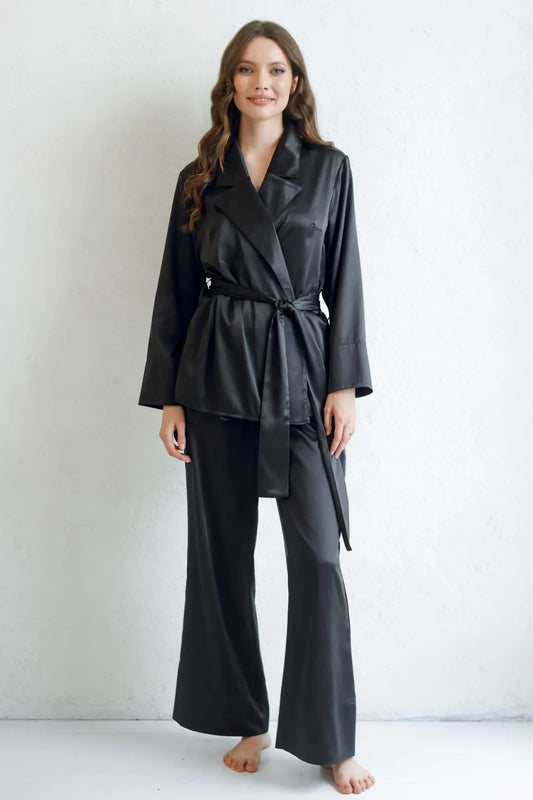 Bata clásica con ribetes (bolsillos laterales) - Negro