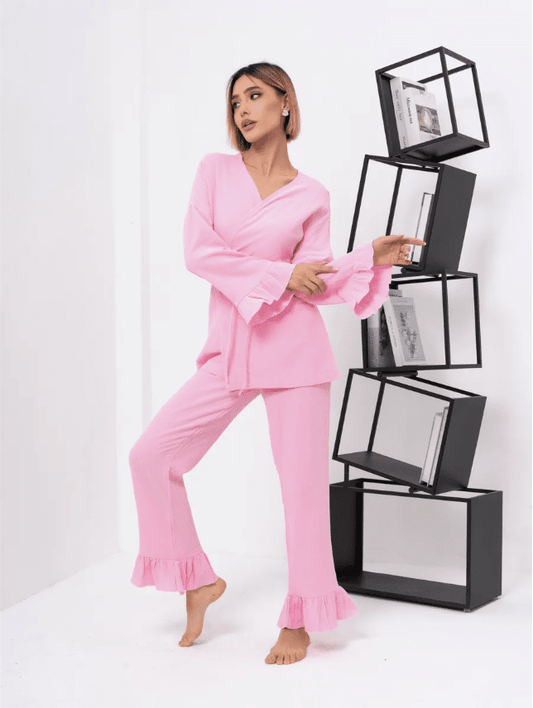 Conjunto de chal de lino con pallazo en azul marino - Barbie Pink