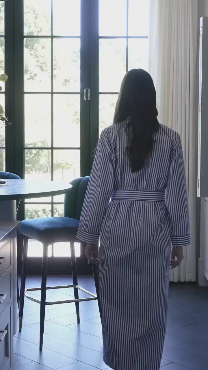 Oxford Stripe 100% Cotton Robe (Long).